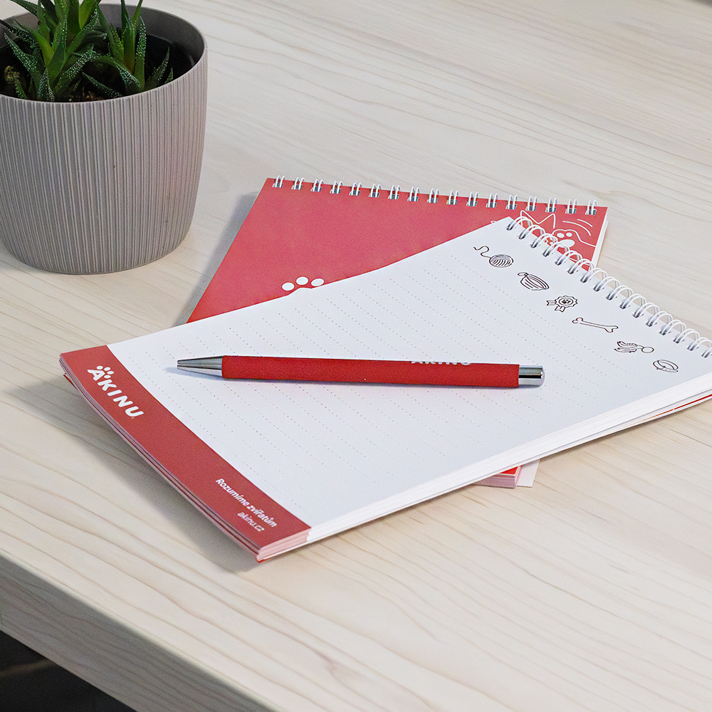 Zaznamenávejte nápady, úkoly i zážitky stylově! Tento červený blok s Akinu motivem si zamilujete na první otevření – ať už jste milovník zvířat, nebo jen hledáte parťáka pro každodenní poznámky.
