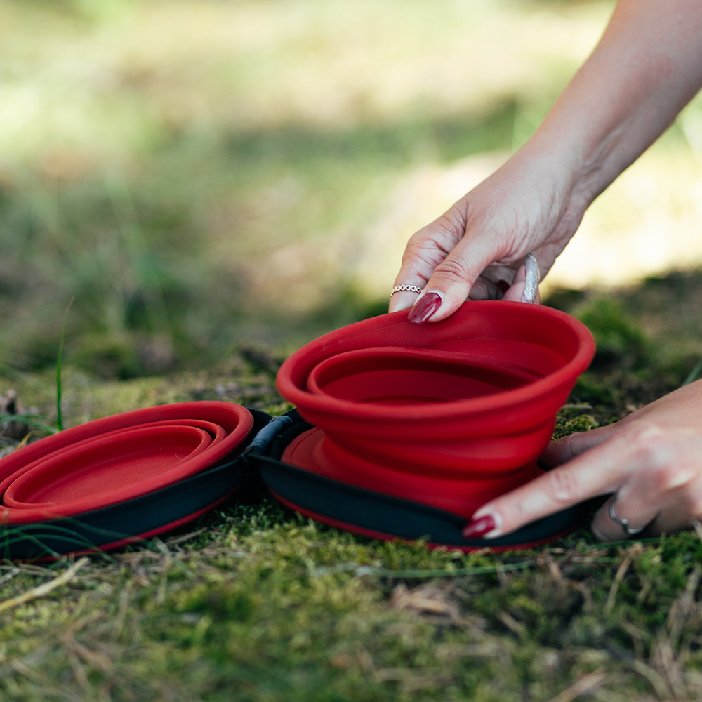 Když se svým parťákem jdete na výlet za novým dobrodružstvím, měli byste vždy mít sáčky, pamlsky, lahev s vodou a tuhle rozkládací cestovní dvojmisku z kolekce Akinu ČESKÝ LES. Nezabírá žádné místo a postará se o to, že váš miláček nebude mít hlad ani žízeň, kamkoliv se vydáte.