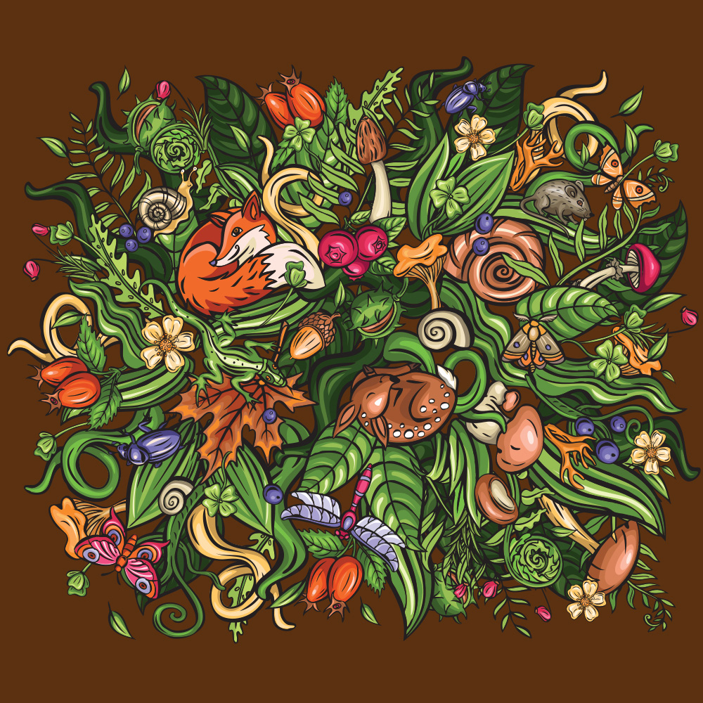 – motivy, zvířata a prvky pocházející z reálií českého lesa