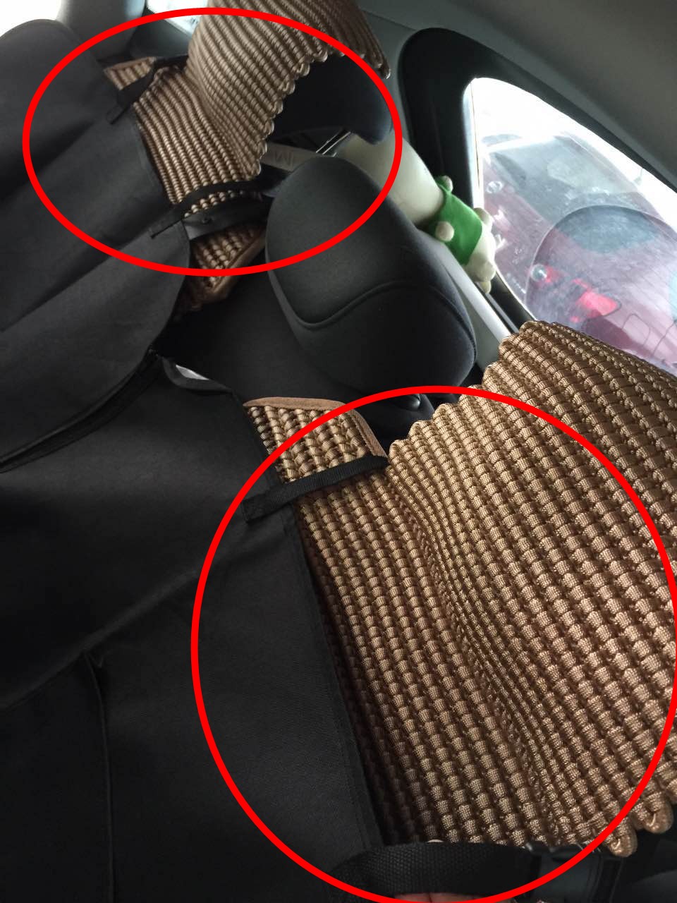 Cestovní deka je vhodná na zadní sedačky auta. Jednoduše se upevňuje za opěrky sedaček pomocí plastového trojzubce. Deka má otvory, kterými lze provlíknout bezpečnostní pás, který připnete do zámku bezpečnostního pásu. Pokud si budete chtít k pejskovi sednout, jednoduše rozepnete zip a jednu část odepnete z opěrátka sedačky a deku přehnete přes okraj sedačky.