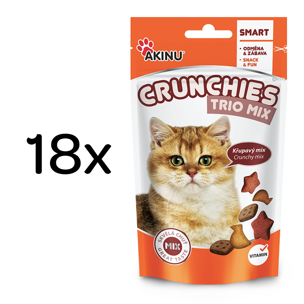 Akinu CRUNCHIES TRIO MIX – Křupinky pamlsek pro kočky 18 x 50 g