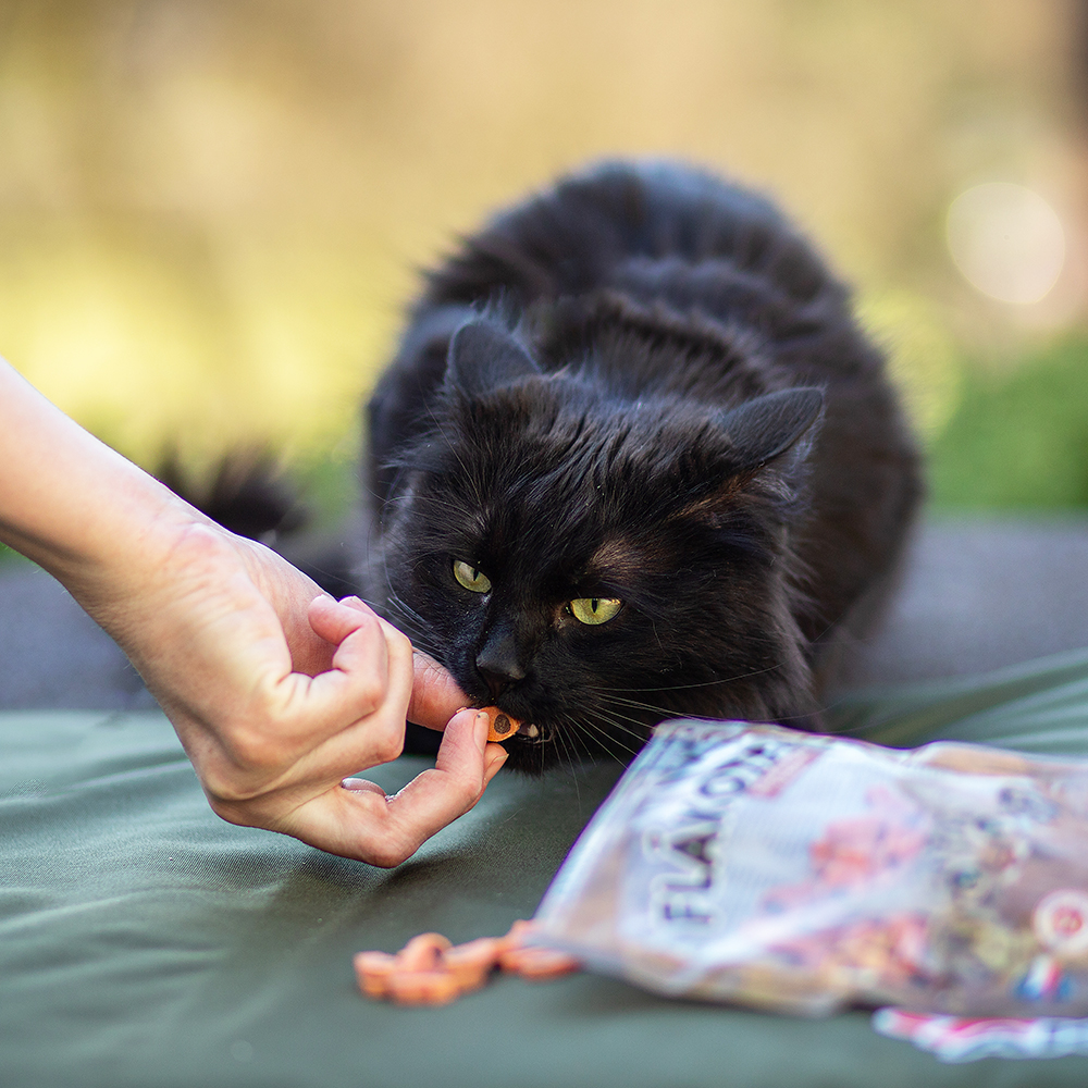 Nad běžnými pamlsky vaše kočka ohrnuje nos? Jen tak něčím ji neoslníte? Zkuste ji překvapit nečekanou kombinací kachny a ryby, které neodolá ani ten nejmlsnější kočičí jazýček. Masu bez přidaných látek se zkrátka odolává těžko.