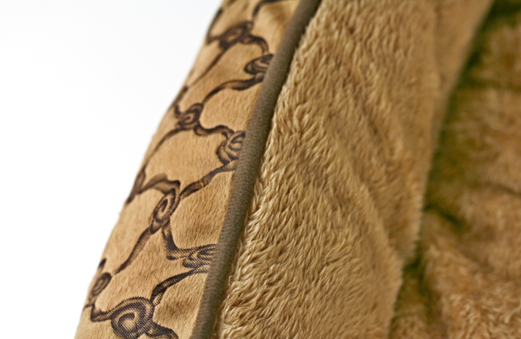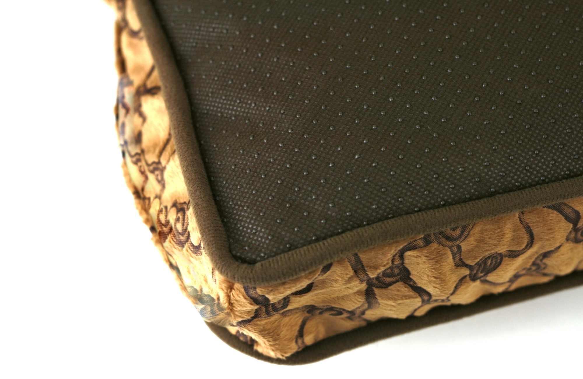 Bronzový pelíšek je vyrobený z extra jemné látky s reliéfním vzorem s TERMO vrstvou. Výplň pelíšku je vyrobena z kvalitního dutého vlákna. To je v dnešní době moderní a vyhledávaný materiál díky své prodyšnosti a vysoké odolnosti. Rychle prosychá, takže se v něm nedrží vlhkost ani plísně. Na rozdíl od molitanu ho lze prát v pračce, aniž by ztratil své původní vlastnosti a tvar. Vnitřní polštář je oboustranný – z jedné strany je reliéfní vzor a z druhé strany měkoučký plyš.