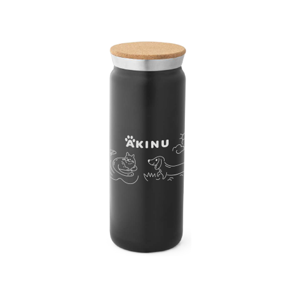 Akinu Termoska z nerez oceli – černá s korkovým víčkem a kresbičkami