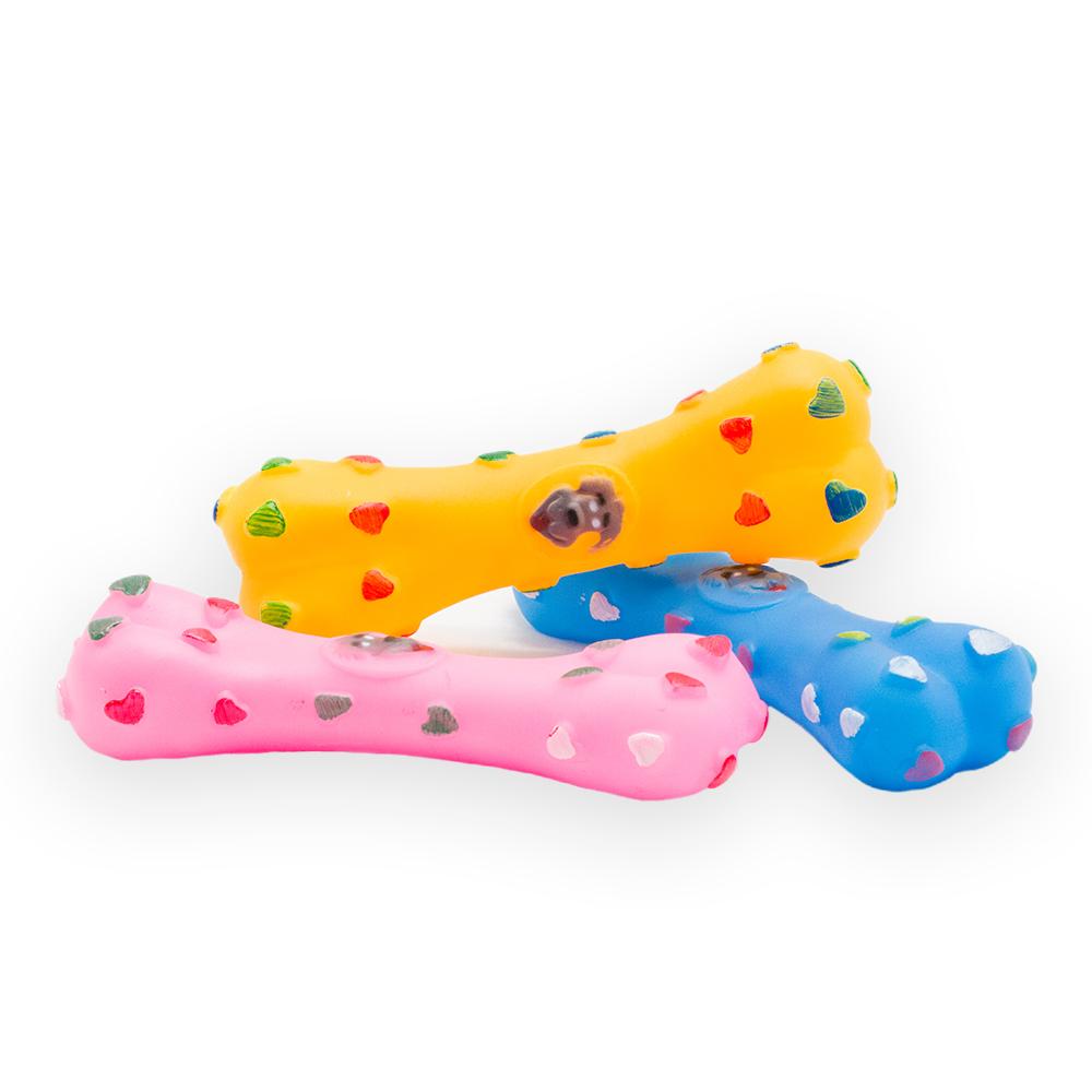 Pískací hračky z vinylu jsou mezi psy velmi populární. Pískání je láká ke hře a díky povrchu, na kterém vystupují srdíčka, se pejskovi dobře kouše. Můžete tuto hračku házet, hrát si společně, nebo pejska nechat, ať si s ní hraje sám. Veselý a roztomilý design této hračky bude bavit nejen jeho, ale i vás.
