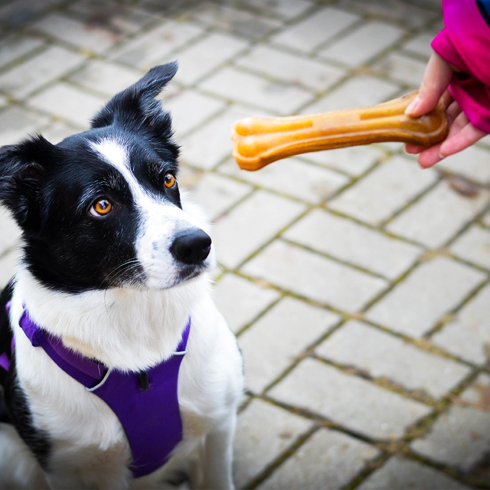 Žvýkání a kousání pamlsků ze sušené kůže je pro psy přirozená zubní hygiena. Omezuje tvorbu zubního kamene a také posiluje žvýkací svaly.