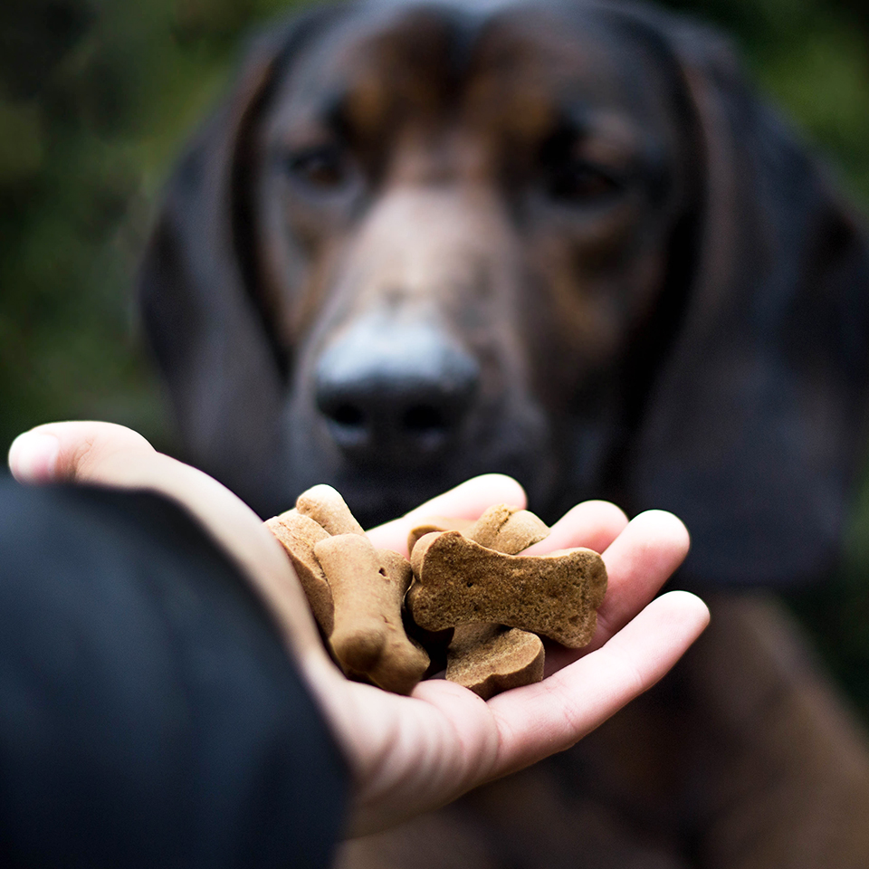 Krmit pejska cukrovinkami pro děti není vhodné. Odměňujte ho sušenkami vyvinutými speciálně pro pejsky.