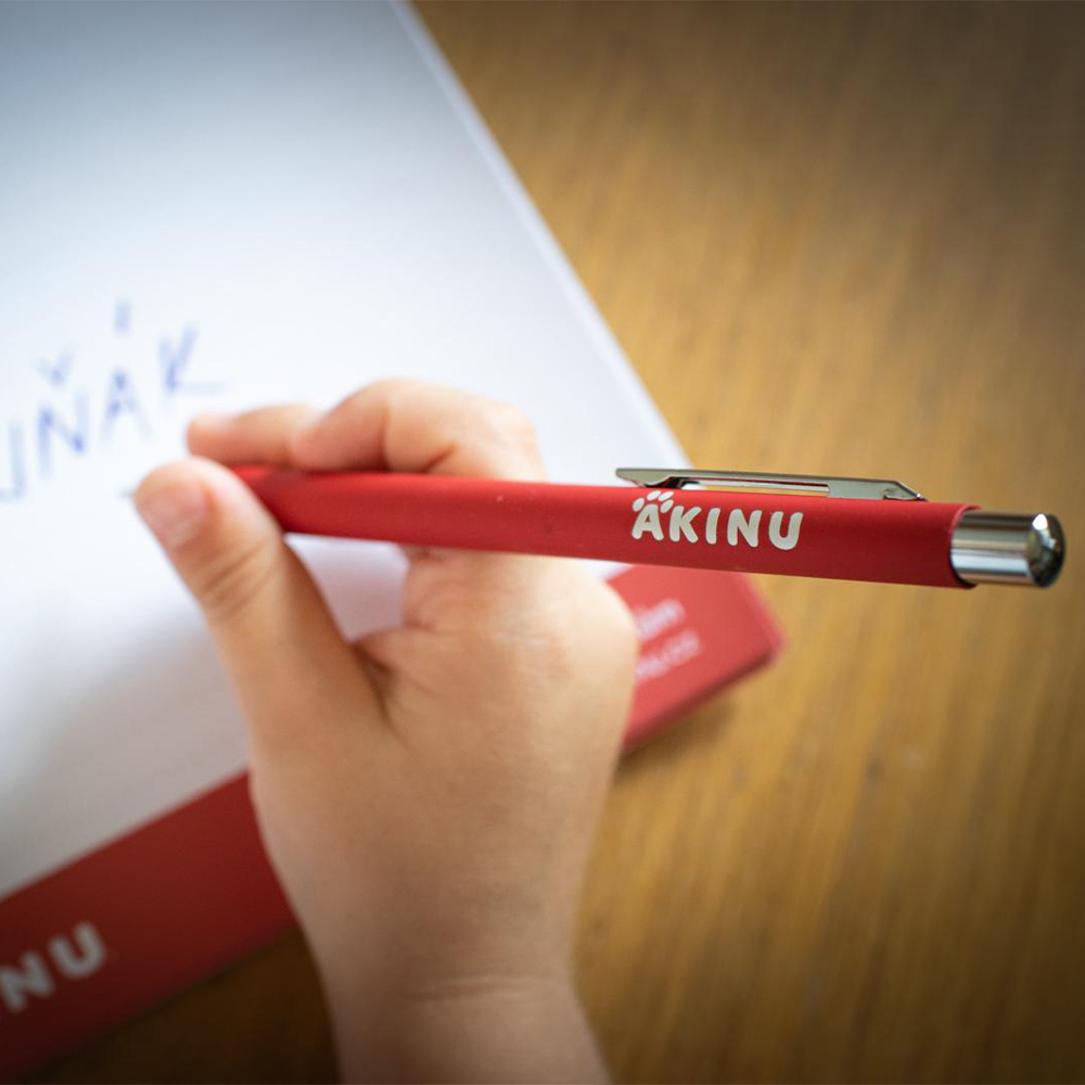 Kovová propiska s jemným kovovým klipem a potištěným logem Akinu nabízí příjemný úchop i elegantní vzhled. Skvělá jako součást výbavy pro milovníky psů nebo jako drobný dárek.