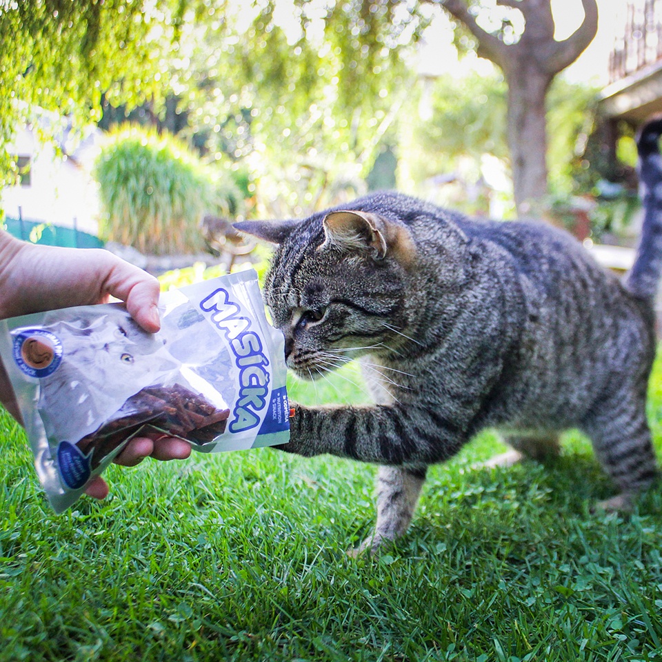 Ne nadarmo se říká: „s motivací nejdál dojdeš“. Chce to jen chutný pamlsek, za který vás i vaše kočka vezme na milost. No a ideálně by mohl takový pamlsek mít i nějakou přidanou hodnotu, když už s ním budete svou kočku uplácet, že jo? Velmi chutné kachní maso je zdrojem kvalitních bílkovin a má nízký podíl tuku. Šetrná technologie zpracování navíc uchovává přirozené výživné látky.