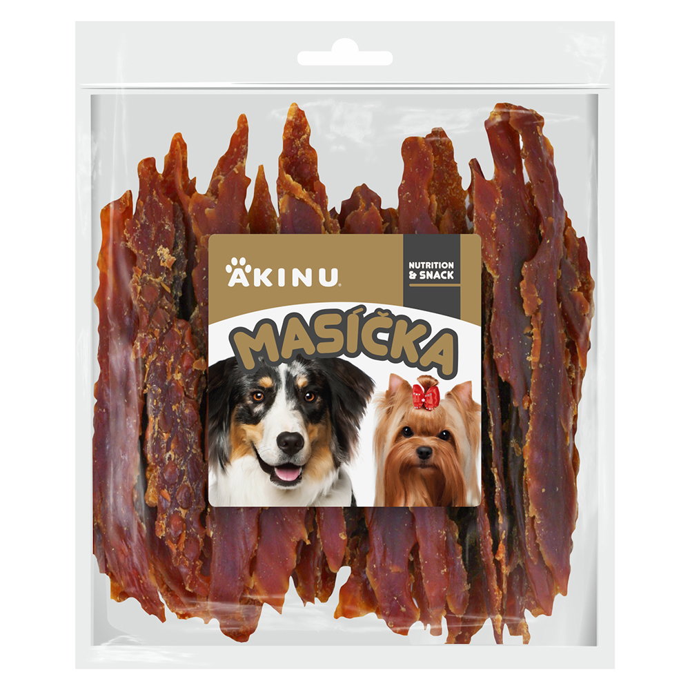 Maso je přirozenou součástí psí výživy a při tréninku je tou největší motivací. Šetrná technologie zpracování Akinu Masíček uchovává přirozené výživné látky a vy tak máte jistotu, že svému miláčkovi dáváte jen to nejlepší.