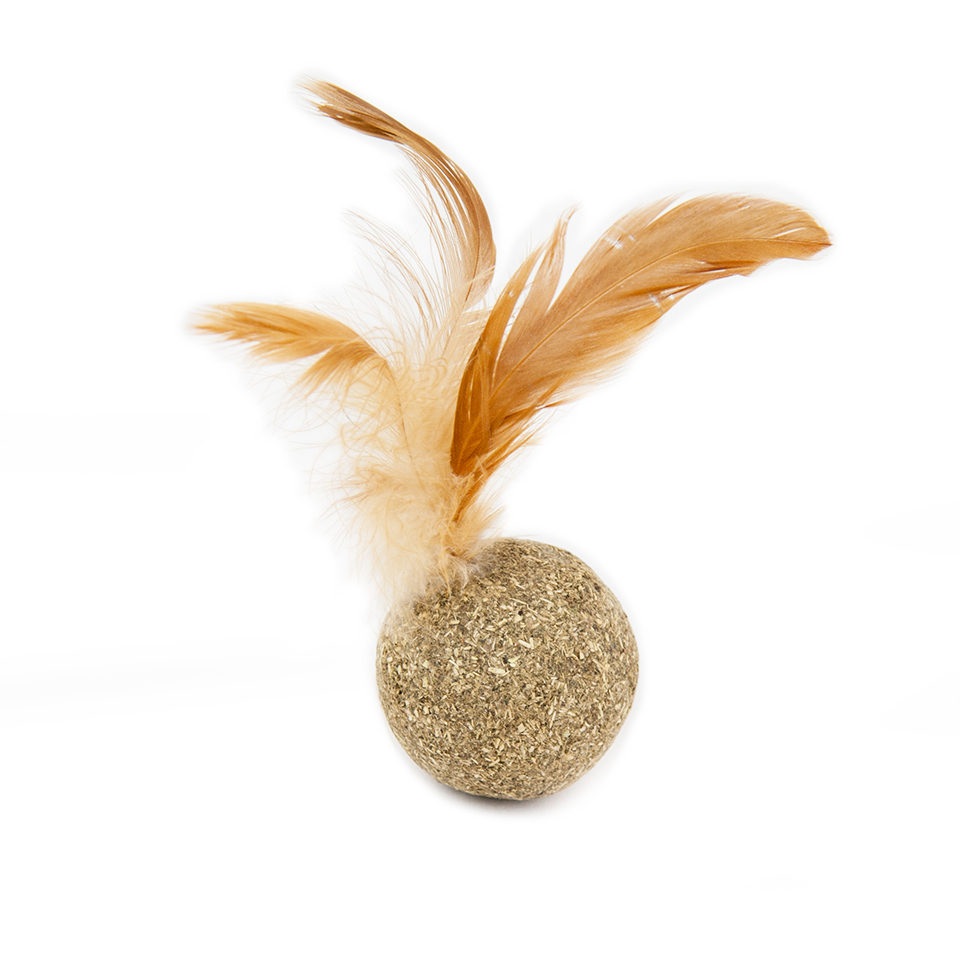 Tvar míčku zaručuje hodiny zábavy, jelikož před kočkou bude hračka “utíkat”. Třešničkou na dortu je peří, které z kuličky vykukuje.