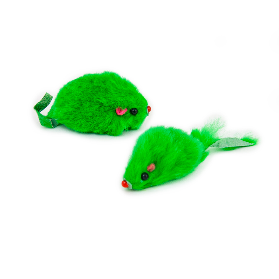Králičí kůže, ze které jsou myšky vyrobené, přirozeně na kočky působí jako afrodiziakum, kočička se tak nebude moci hračky nabažit. Pro ještě větší zábavu v sobě mají myšky zabudované chrastítko. Balení obsahuje dvě myšky ve velikosti 9 cm.