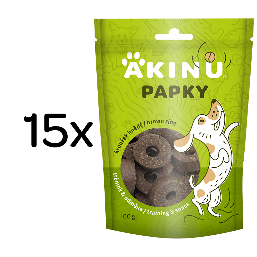Akinu PAPKY Kroužek hnědý pamlsek pro psy 15 x 100 g
