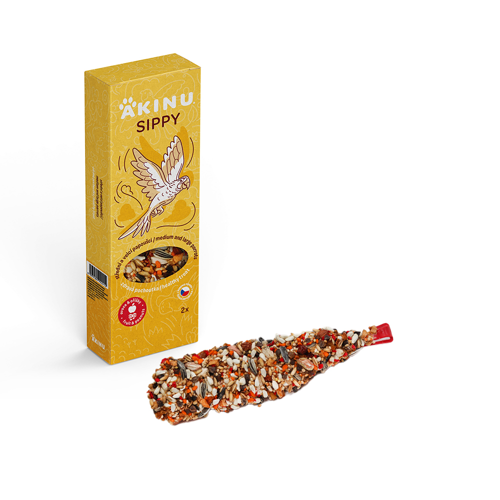 Akinu SIPPY Tyč ovocno – ořechová doplňkové krmivo pro střední a velké papoušky 2 ks