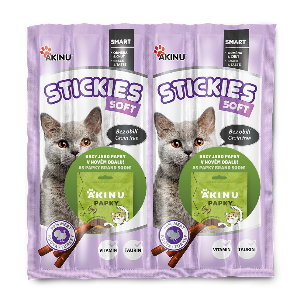 Akinu STICKIES tyčinky jsou lahodnou pochoutkou s chutí krůtího masa a jater. Obsahuje vitaminy a taurin pro lesklou srst. Zkuste obměnit křupavými nebo masovými variantami.