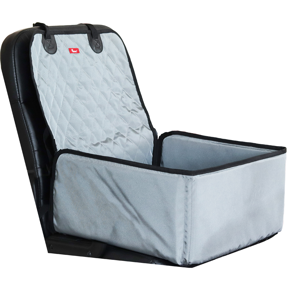 Cestovní taška je vhodná na sedačky auta. Jednoduše se upevňuje za opěrky sedaček pomocí plastového trojzubce. Deka má otvory, kterými lze provlíknout bezpečnostní pás, který připnete do zámku bezpečnostního pásu. Pokud si budete chtít k pejskovi sednout, jednoduše rozepnete zip a jednu část odepnete a deku přehnete přes okraj sedačky.