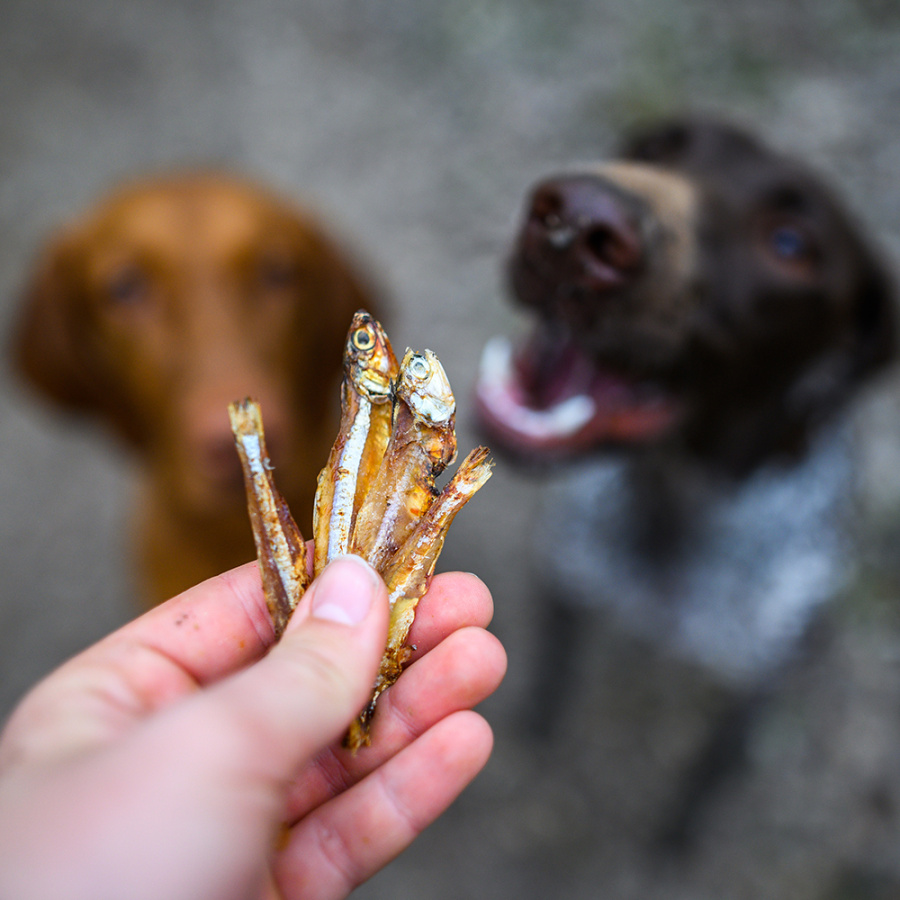 Šproty jsou usušené vcelku a jsou plné vitaminů, enzymů, minerálních látek, nenasycených mastných kyselin omega 3 a 6, stopových prvků a dalších hodnotných živin, které by mohly v běžné psí stravě chybět. Jsou lehce stravitelné a s nízkým obsahem tuku. Rybičky se dají konzumovat vcelku nebo dle potřeby snadno lámat na malé kousky, tím jsou ideální pro všechny velikosti plemen. Jsou přirozeně voňavé, proto psům velmi chutnají. Psi získají krásnou srst, zdravé zuby a oči.