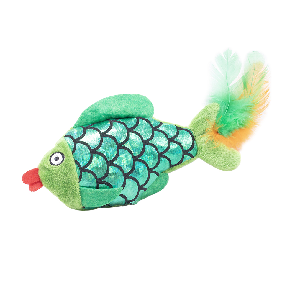 Akinu VÁNOCE Plyšový kapr s pírky hračka pro kočky zelená 15 cm
