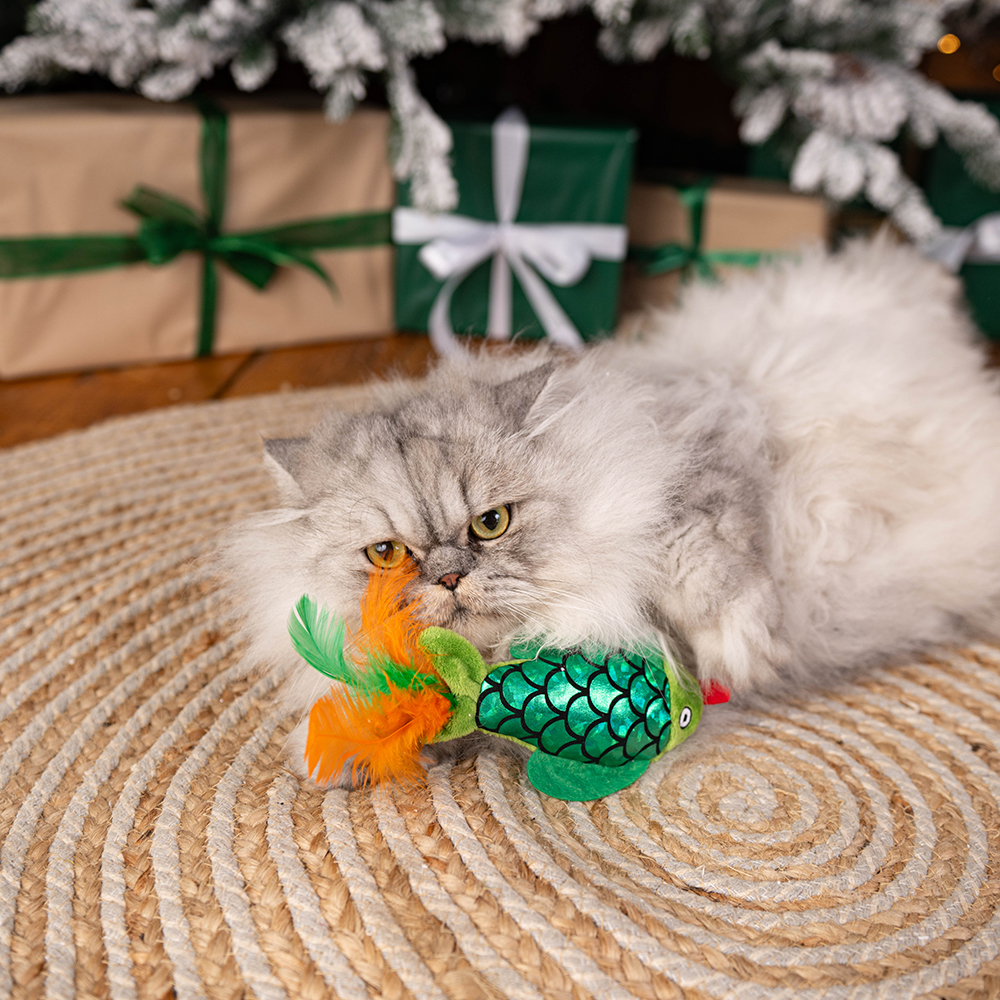 Akinu kapr s pírky je veselá vánoční hračka pro vašeho kočičího parťáka.
