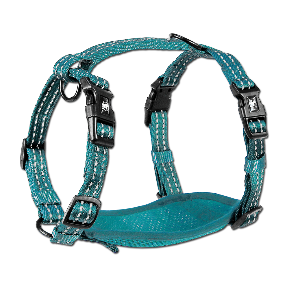 Postroj je vybaven síťovaným polstrováním proti zapocení a reflexními prvky pro pohodlný a bezpečný pohyb v lese i ve městě. Praktický design se třemi rychlosponami umožní nasadit postroj jako obojek a poté připevnit kolem pasu.