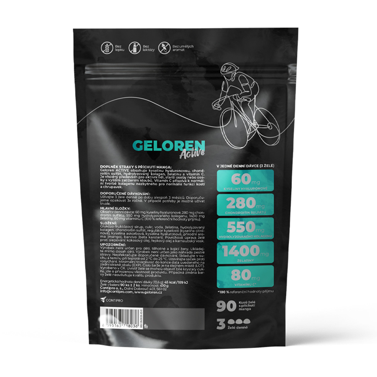 Geloren Active je doplněk stravy na klouby v podobě želé s vysokým obsahem látek pro výživu kloubů s příchutí manga. Balení obsahuje 90 ks želé.