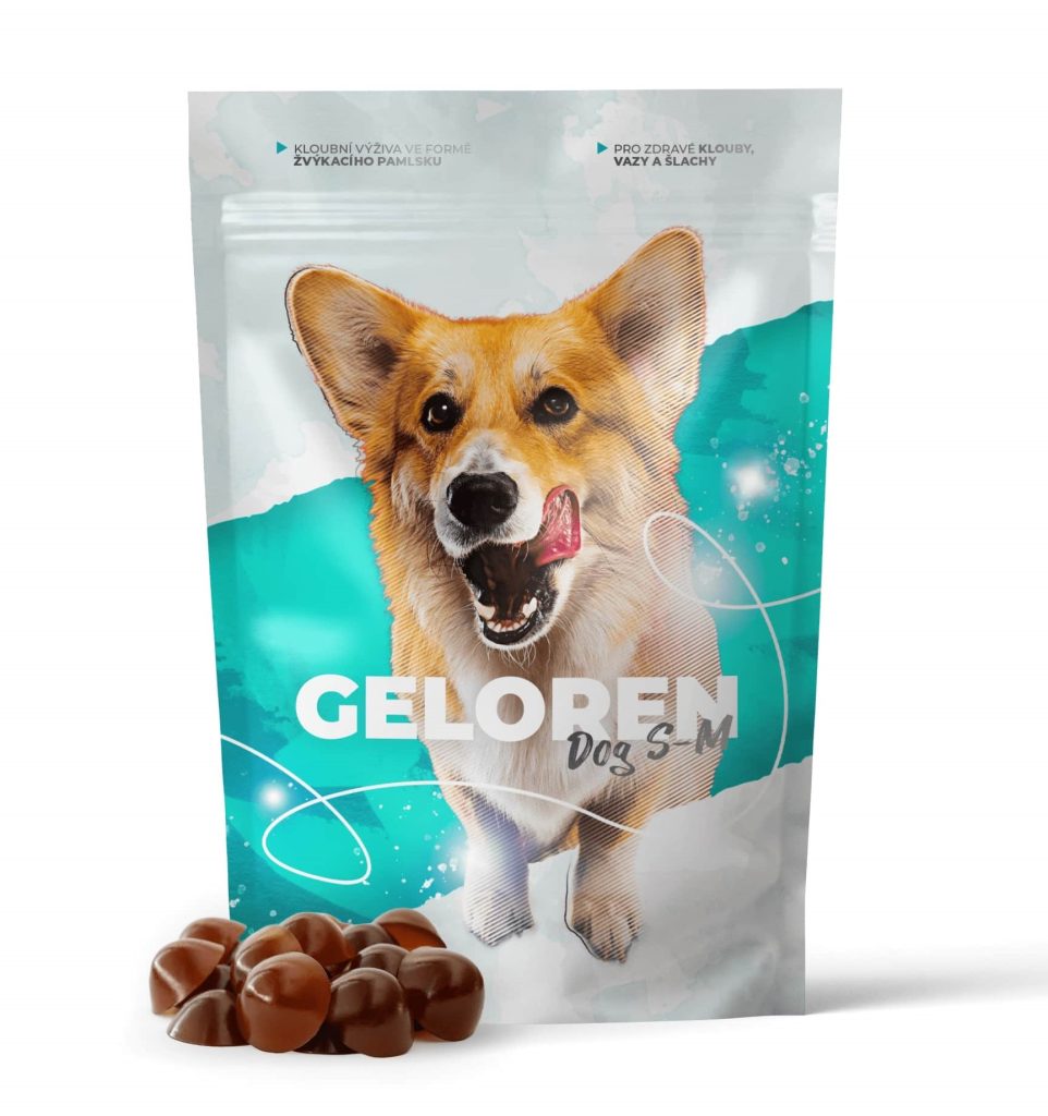 Žvýkací želé Geloren dog obsahují aktivní látky potřebné pro správné fungování kloubů, vazů a šlach.