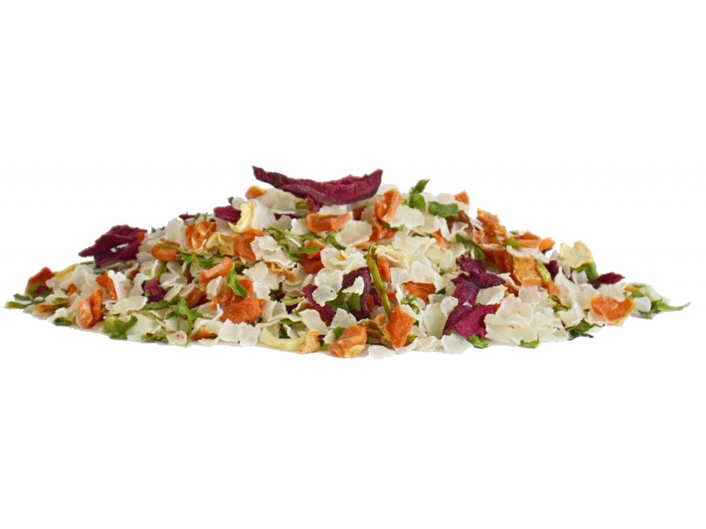 Složení: hnědá rýže vločky natural, mrkev, pastinák setý, červená řepa, celer bulvový, pór letní, petržel zahradní kořen, petržel zahradní nať, špenát listový.