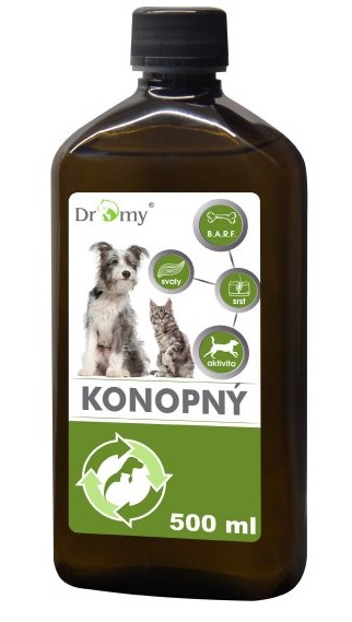 Doplňkové krmivo pro psy složení: Konopný olej panenský za studena lisovaný z odrůdy Bialobrzeskie.