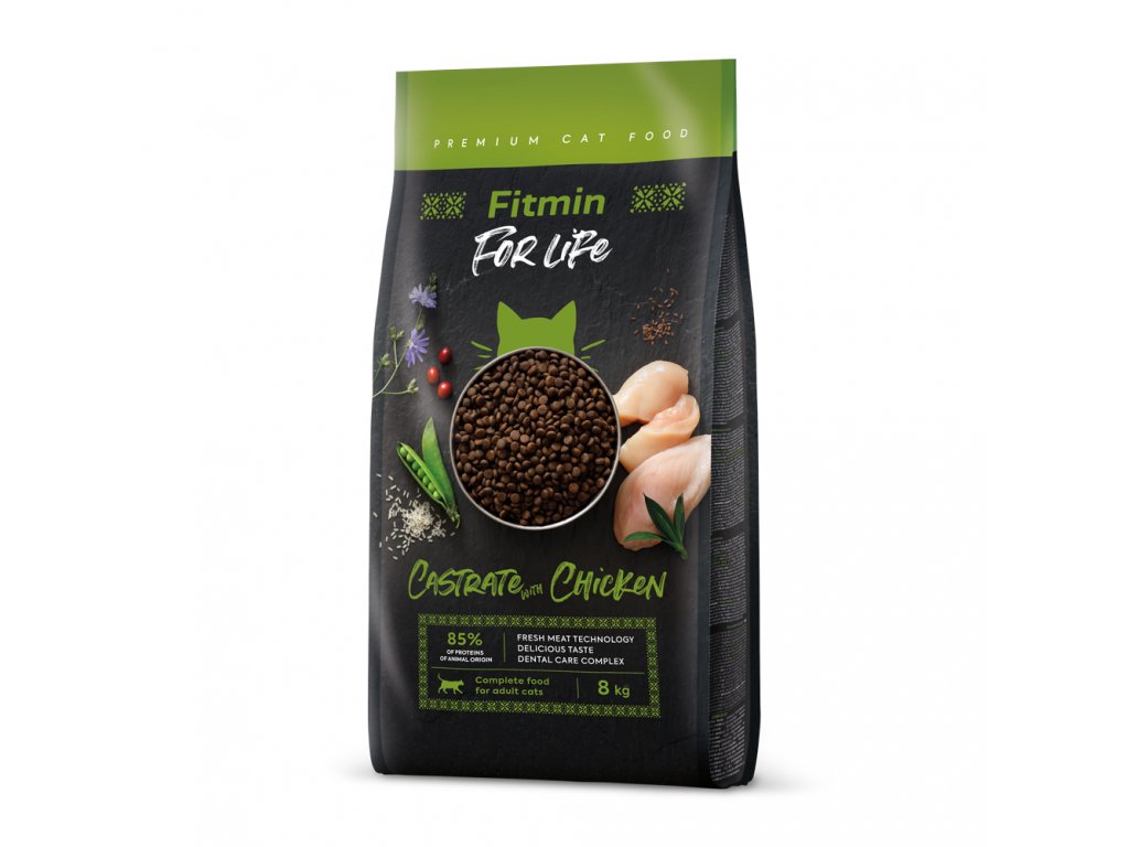Kompletní krmivo s čerstvým kuřecím masem pro dospělé kočky všech plemen. Krmivo Fitmin For Life Castrate Chicken je vhodné pro kastrované kočky.
