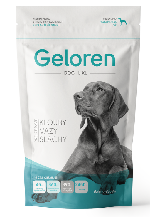 Geloren Dog L-XL je inovativní doplněk stravy pro psy ve formě měkkého želé s játrovou příchutí, kterou si většina psů zamiluje. Praktické želé snadno nahradí běžný pamlsek – je bez přidaného cukru, jednoduše dávkovatelné a především chutné.