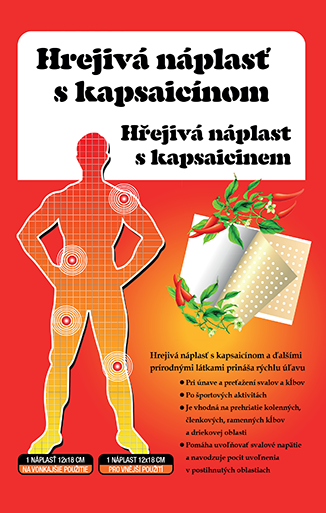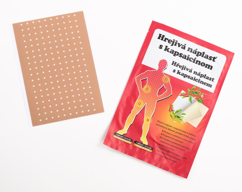 Hřejivá náplast s kapsaicinem a dalšími přírodními látkami pro rychlou úlevu: