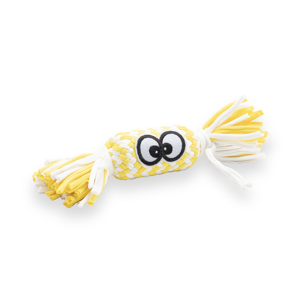 Tato látková hračka ve tvaru bonbonu měří 18 cm a je ideální pro menší i střední psy. Je ušitá z příjemného materiálu, má vyšitá očka a uvnitř skrývá pískátko, které podněcuje zájem a chuť si hrát. Skvělá jako mazlík na doma nebo společník na cesty.