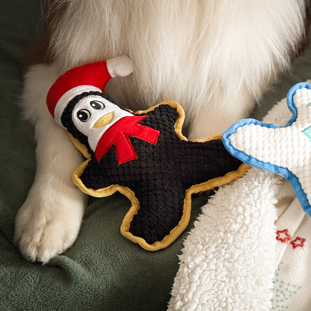 Měkký plyš je příjemný do psí tlamičky, takže se hodí jak na mazlení, tak na hravé přetahování. Pískátko uvnitř probouzí přirozenou zvědavost a podporuje hravého ducha. Tučňák se stane veselým společníkem, ať už si s ním pejsek hraje v pelíšku, nebo během vánočních chvil strávených s rodinou.