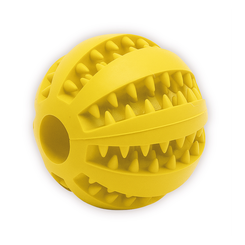 Tento míček o průměru 5 cm je vyroben z odolné gumy a má drážkovaný povrch, který při každém kousnutí přirozeně čistí zuby a masíruje dásně. Díky dutému středu ho lze naplnit oblíbenými pamlsky, paštikou či jogurtem a dopřát tak psovi delší mentální stimulaci i zábavu.