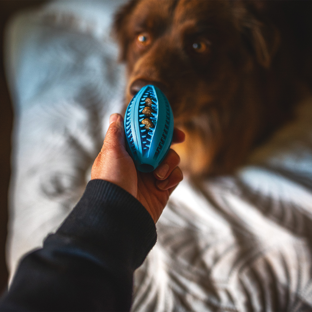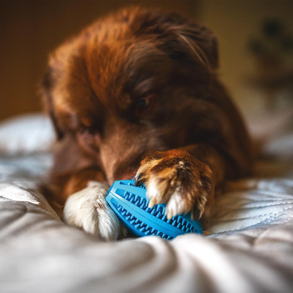 Hledáte hračku, která vašeho pejska zabaví, posílí jeho žvýkací svaly a zároveň pomůže s péčí o zuby? Oválný malý míček je přesně to, co potřebuje každý hravý čtyřnohý parťák.