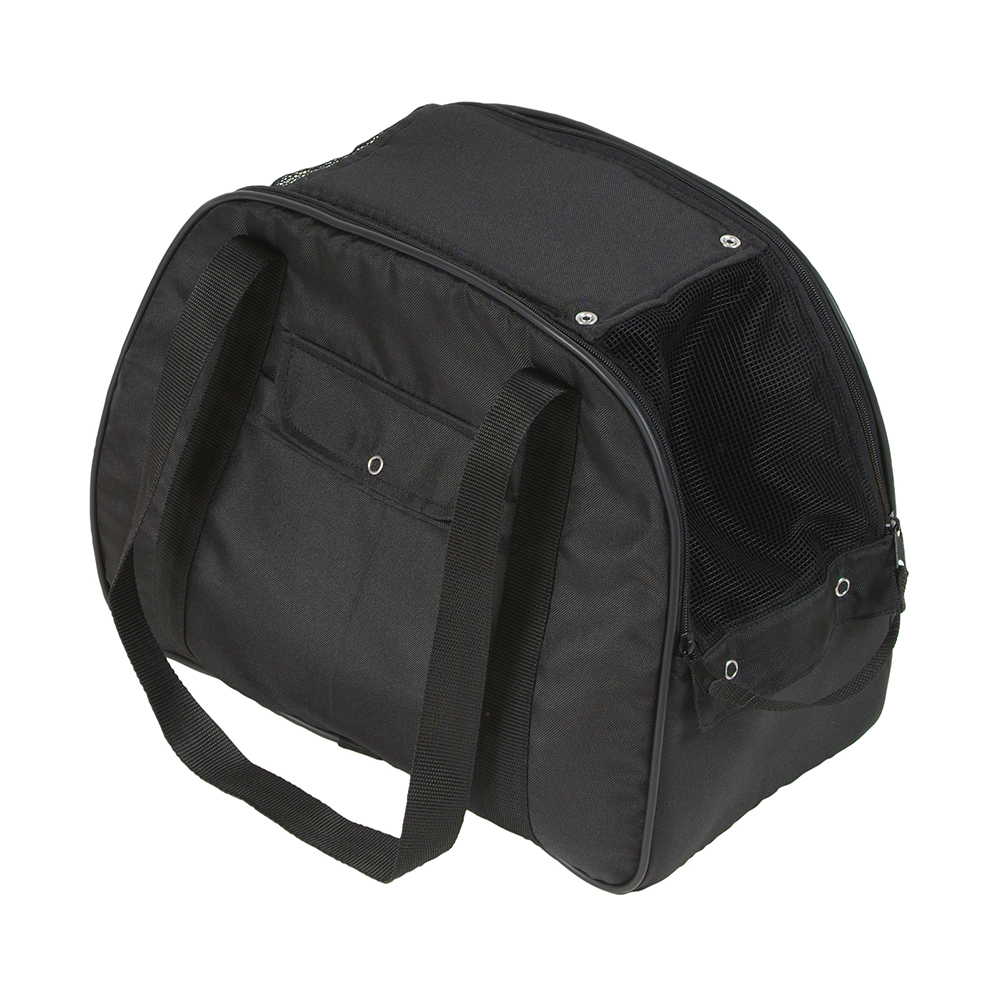 Luxusní taška s pevnou konstrukcí, praktickými síťkami a dvěma rozepínacími zipy, díky kterým můžete horní část tašky snadno sundat. Taška má vyztužené dno pro maximální stabilitu, vyjímatelný oboustranný polštářek a praktickou boční kapsu na pamlsky či drobnosti. Bezpečnost zajišťuje vnitřní poutko s karabinkou pro připnutí k obojku nebo postroji.