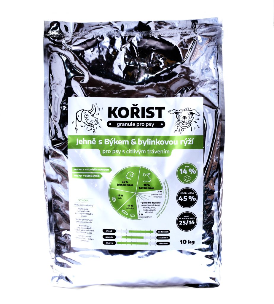 Kořist granule Jehně s Býkem a bylinkovou rýží 25/14 Hmotnost: 10 kg