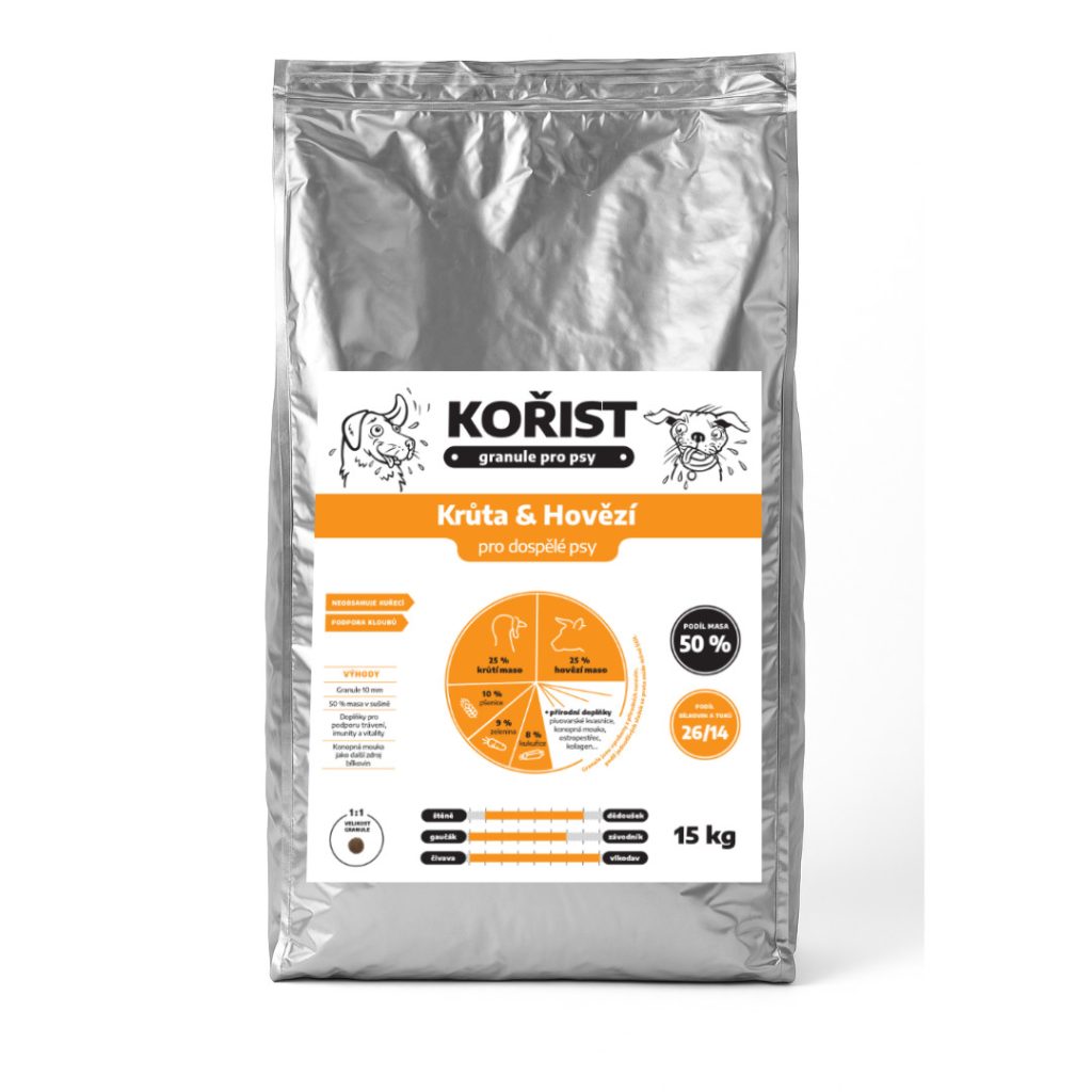 Kořist granule Krůta a Hovězí 26/14 Hmotnost: 15 kg