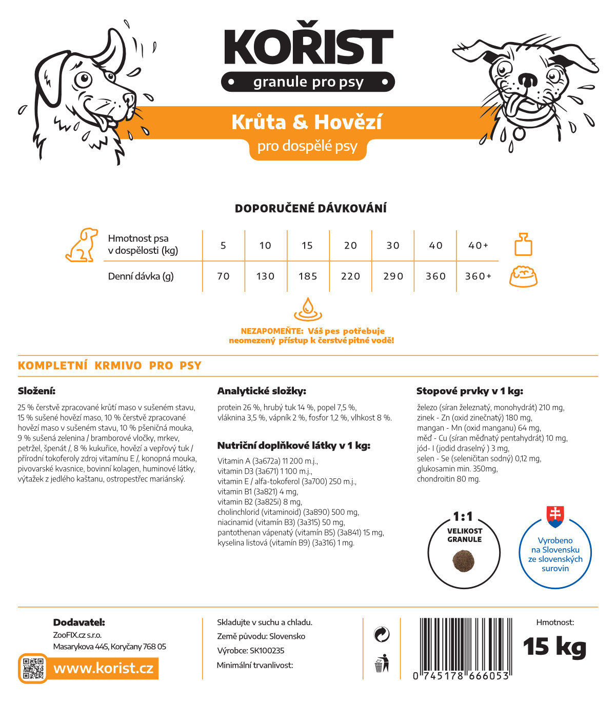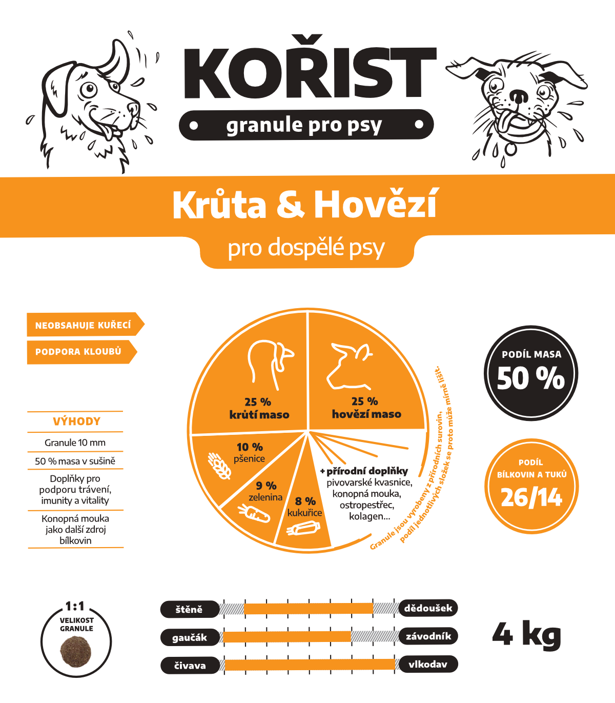 Kořist granule Krůta a Hovězí 26/14 Hmotnost: 4 kg
