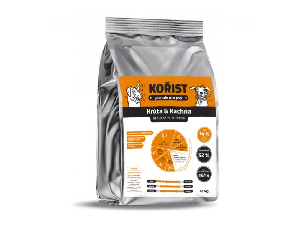 Kořist lisované granule Krůta a kachna 26/14 Hmotnost: 14 kg