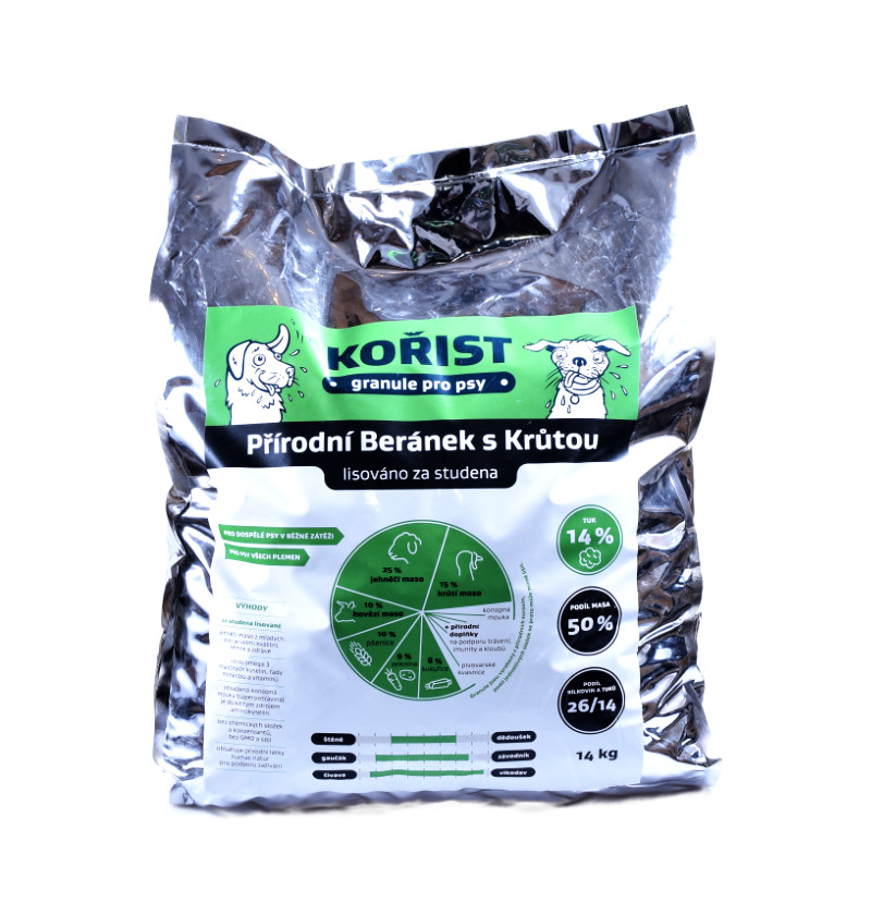 Kořist lisované Přírodní Beránek s Krůtou 26/14 pro dospělé psy Hmotnost: 14 kg