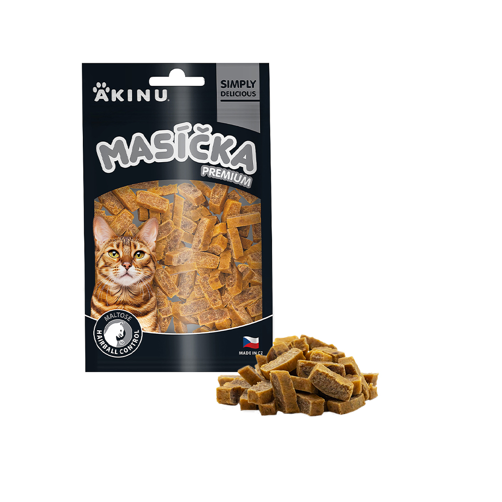 Akinu MASÍČKA PREMIUM Hairball Control pamlsek pro kočky 50 g