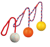 Hračka pes Míč hrbolatý na šňůrce 6cm/30cm Trixie
