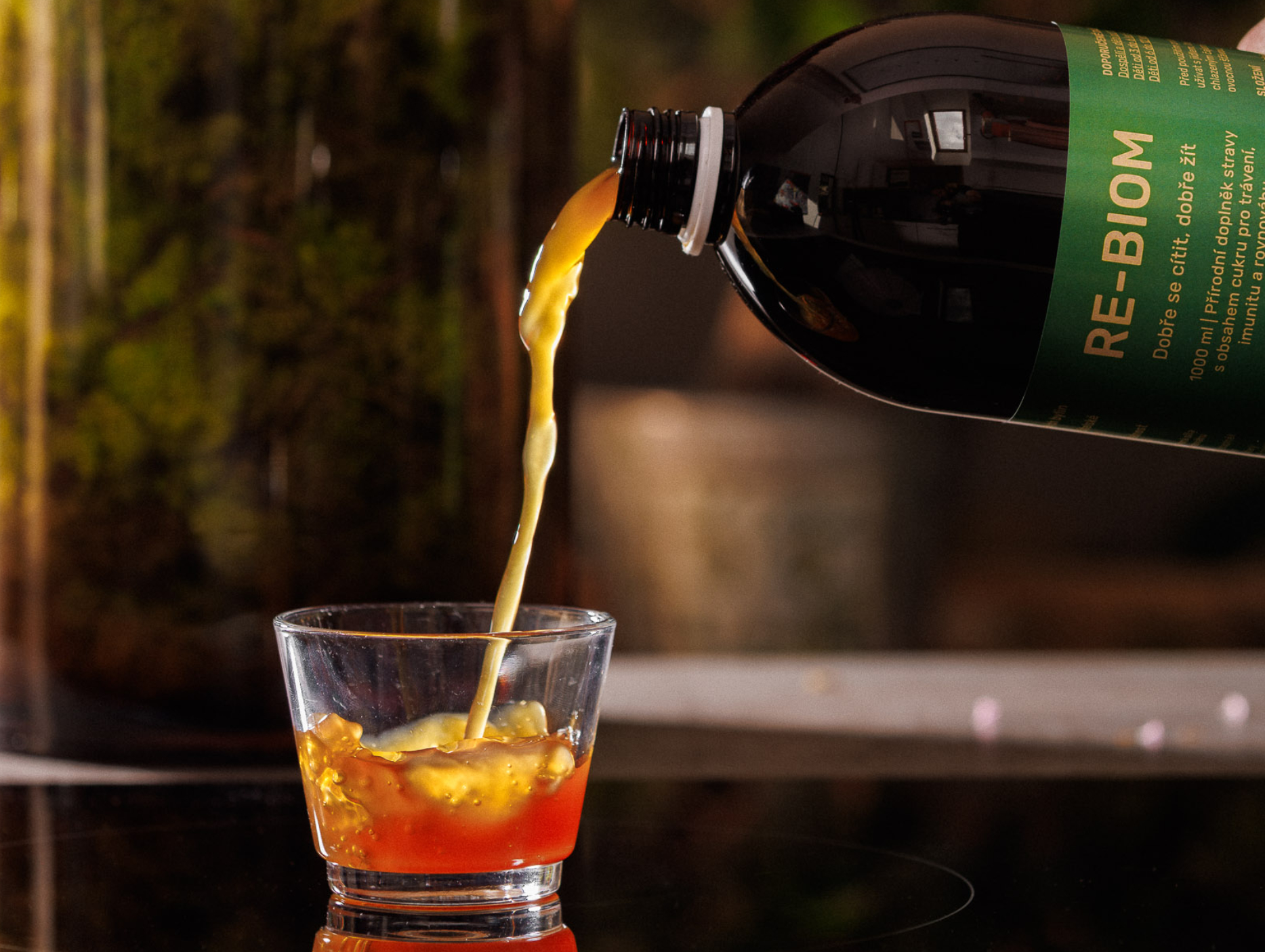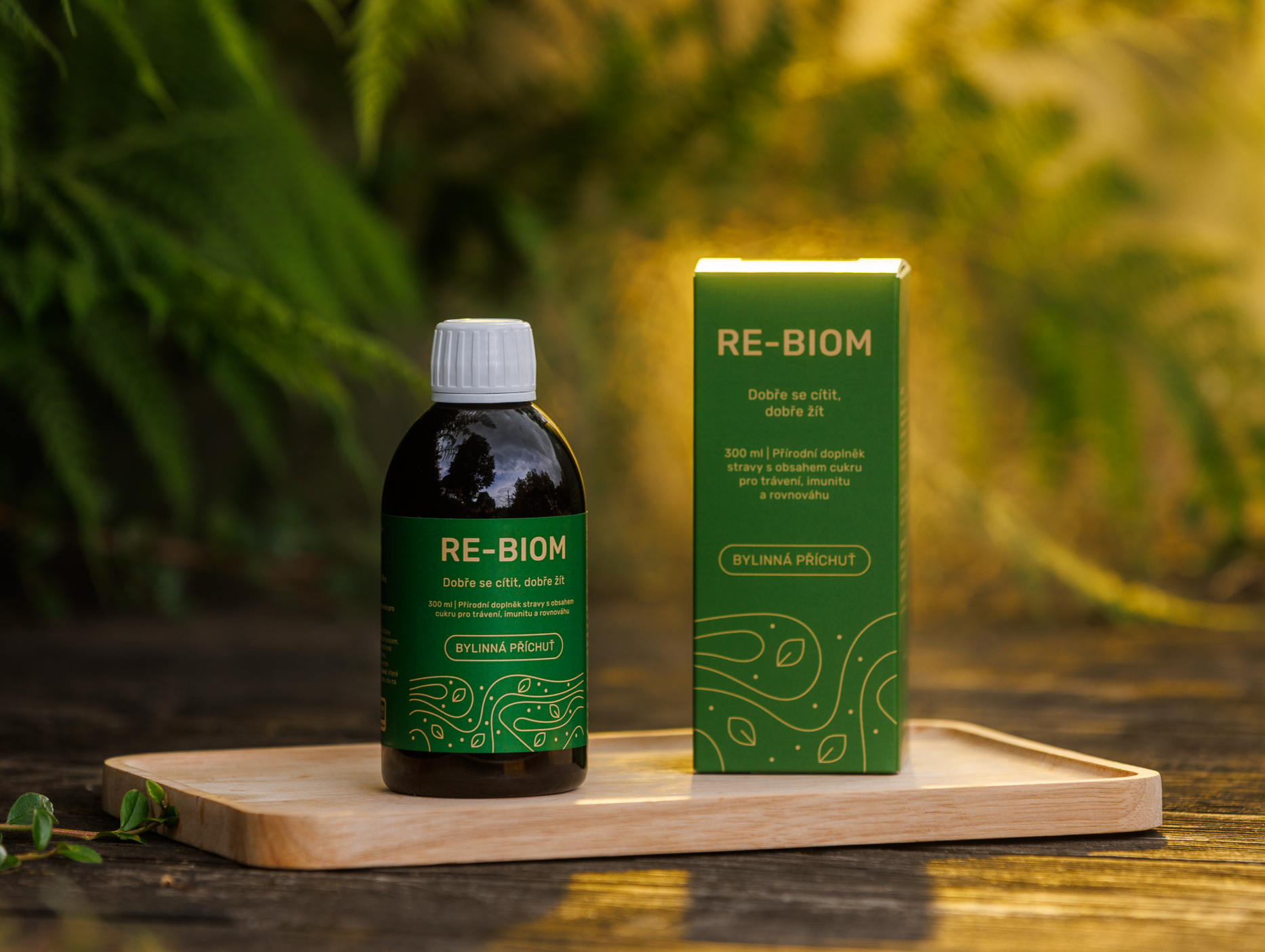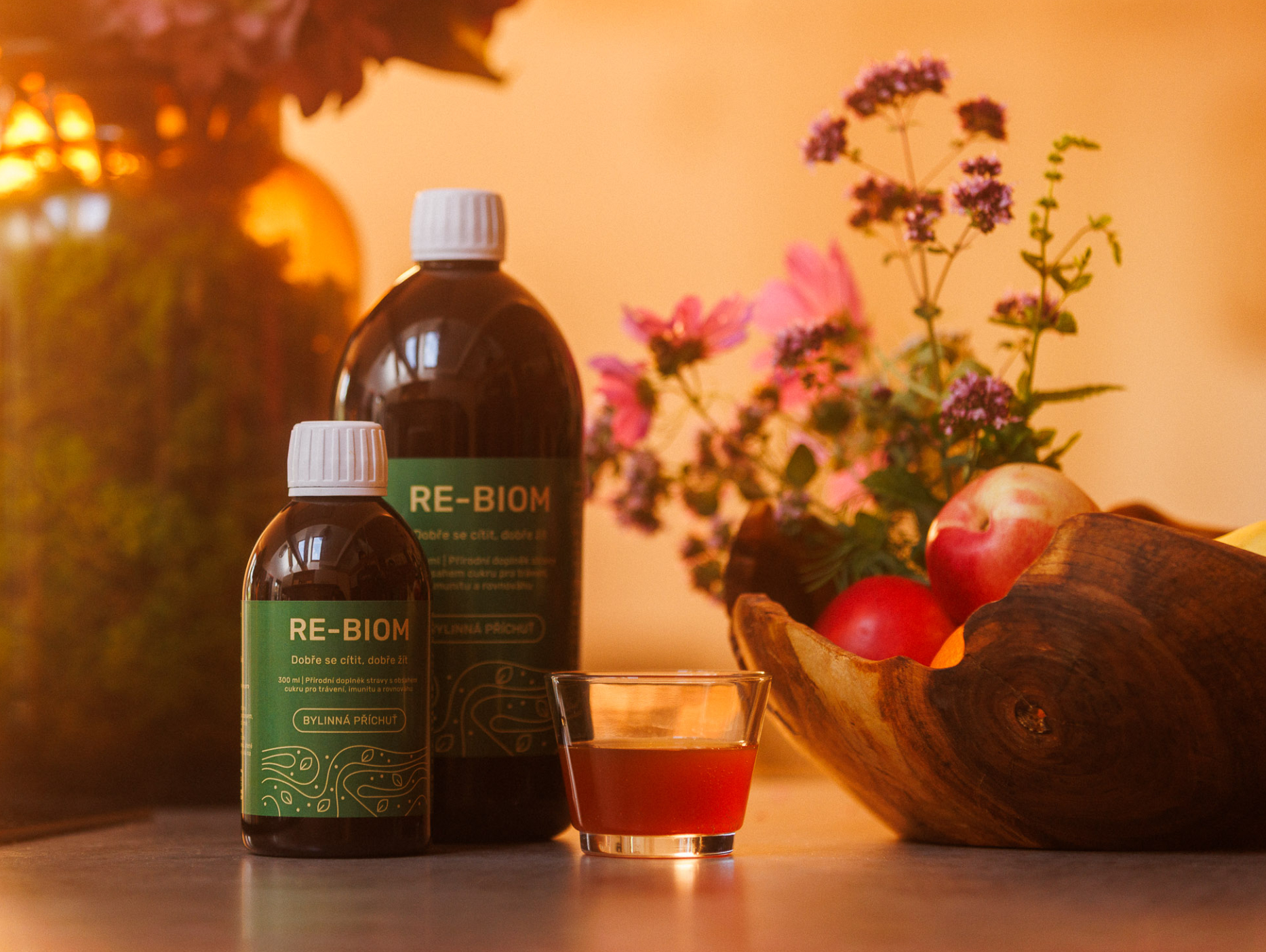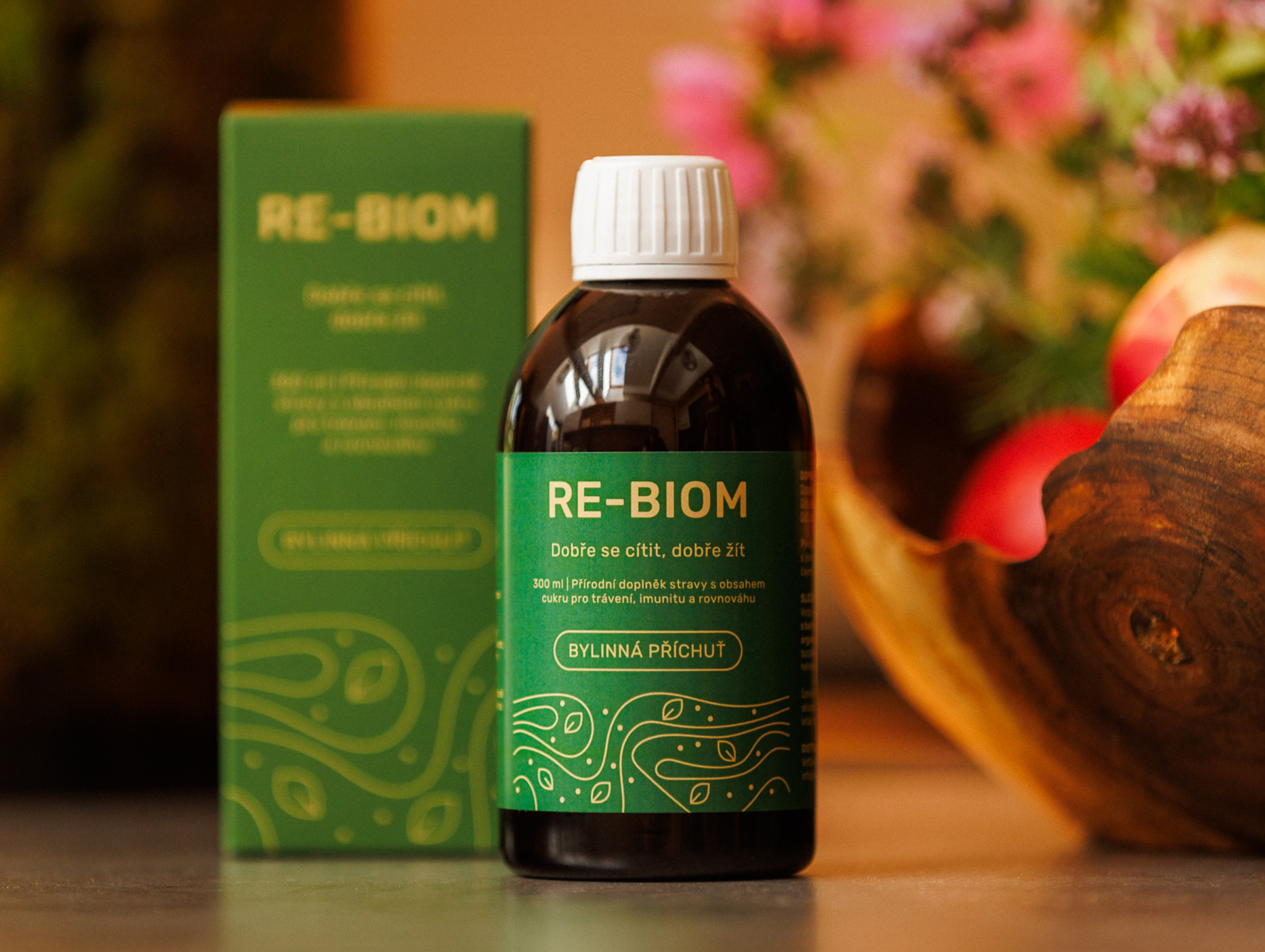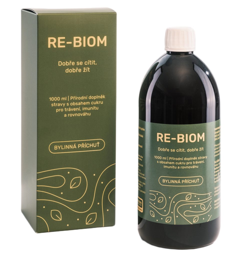 Re-BIOM je tekutý doplněk stravy s obsahem fermentovaných bylin a postbiotických složek – určený pro každodenní péči o trávení, střevní mikrobiom a vnitřní rovnováhu.