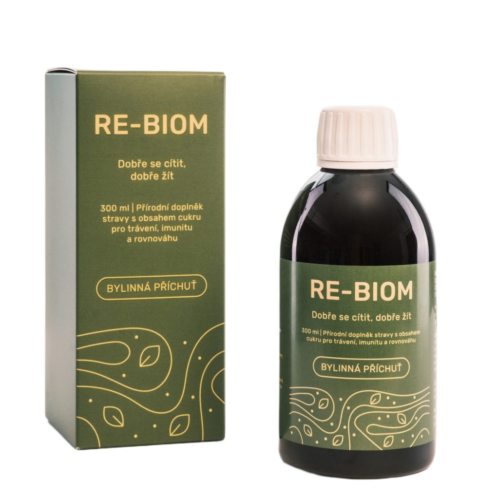 Re-BIOM je tekutý doplněk stravy s obsahem fermentovaných bylin a postbiotických složek – určený pro každodenní péči o trávení, střevní mikrobiom a vnitřní rovnováhu.