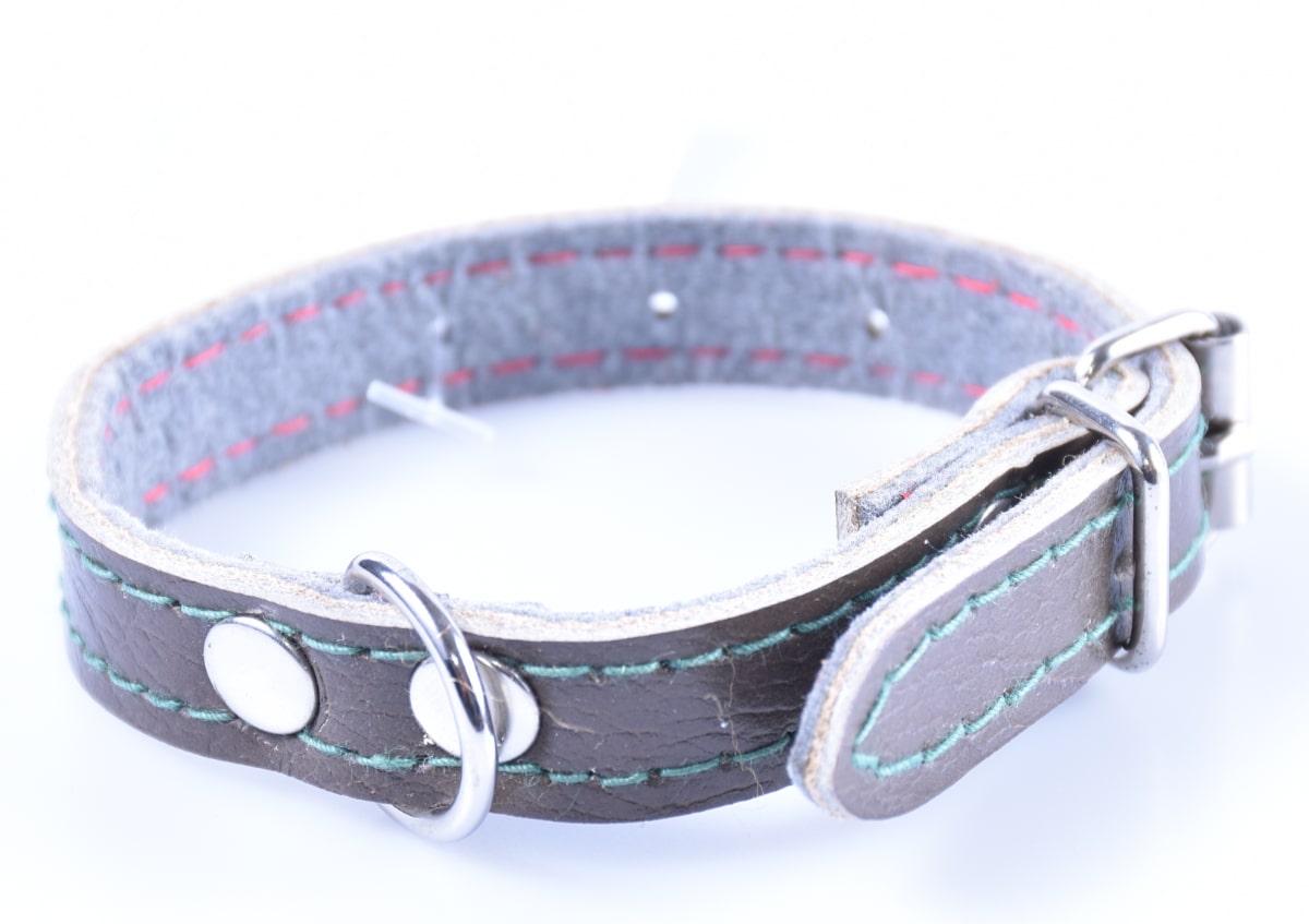 Spoje kožených obojků jsou snýtovány kovovými nýty. Stejnými nýty a kouskem kůže je přichyceno i kovové očko pro připnutí vodítka. Na konci obojku jsou dírky pro regulaci velikosti.