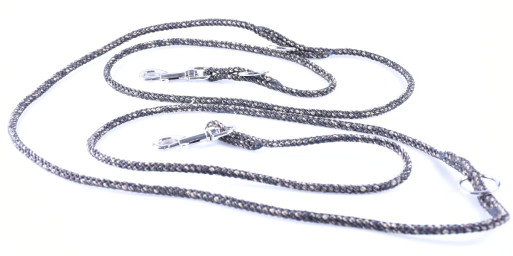 - 3 kroužky a 2 karabiny (=několik variant – klasické vodítko, šerpa nebo očko pro udržení psa na kratší vzdálenost).