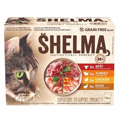 Shelma kočka kuřecí hovězí kachní a krůtí 12 ks 85 g
