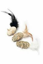 Hračka kočka Myš s peřím, pletená lanem 5cm/3ks KAR