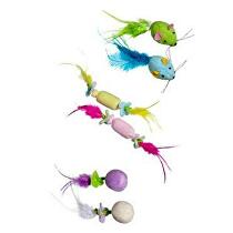 Hračka kočka Udice 3míčky s rolničkou, catnip 50cm KAR